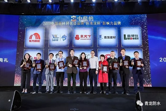 2019年5月9日,以"聚焦精裝,共筑未來"為主題的2019房地產(chǎn)供應(yīng)鏈發(fā)展峰會(huì)暨"中楹磅"中國建材網(wǎng)優(yōu)選品牌頒獎(jiǎng)典禮在廣州香格里拉酒店隆重舉行,青龍建材應(yīng)邀出席,同時(shí)憑借品牌實(shí)力和市場影響力成功榮獲防水材料影響力品牌獎(jiǎng),這是對(duì)青龍公司長期以來的品牌經(jīng)營和市場拓展的肯定與褒獎(jiǎng)。